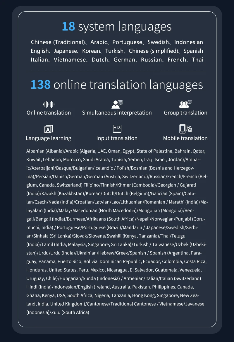 • 🌐 Supports up to 138 languages online